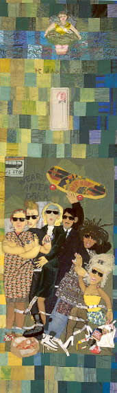a pantomime character. A small embroidery, on linen, of a Mackintosh