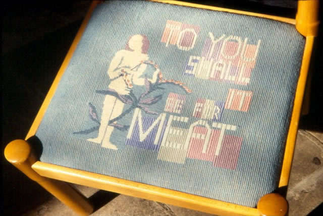 Chair 4: Shows Adam receiving the gift of the plants and flowers.